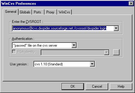 CVS stands for "Concurrent Versions System" and the CVS for DXSpider is held at Sourceforge. This means that it is possible to update your DXSpider installation to the latest sources by using a few simple commands. A graphical interface to CVS for Windows is explained in the next section.